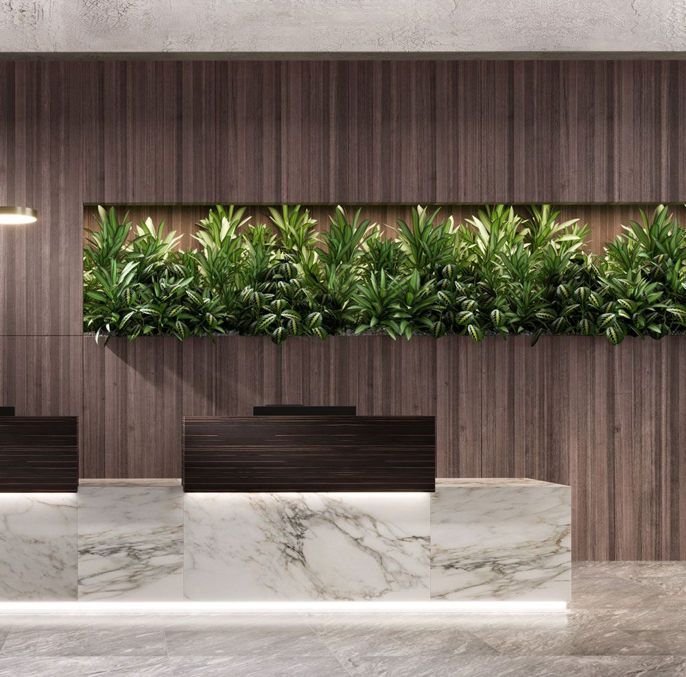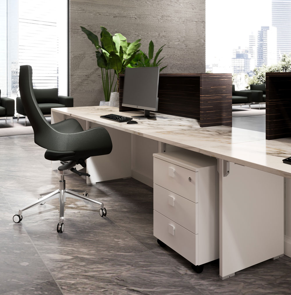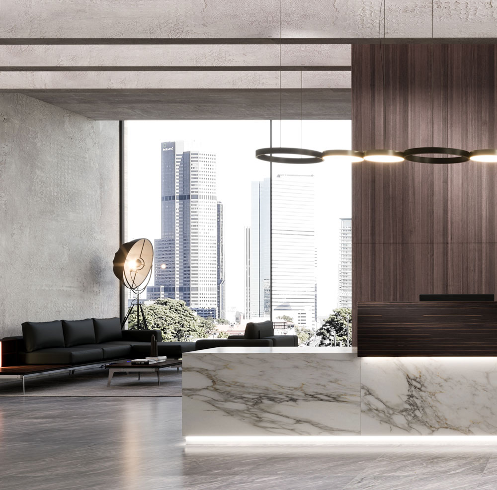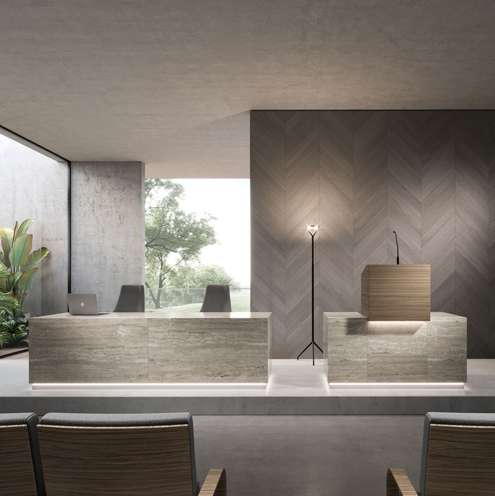| Specs | A modern counter crafted from 25mm high-quality MDF with painted, veneer or ceramic-clad finishes, featuring durable metal beams, integrated cable management, adjustable ABS glides, and warm LED lighting for a sleek and functional design. |