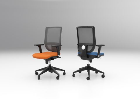 A mesh back chair with upholstered fabric or leather seat and provided with adjustable hand…