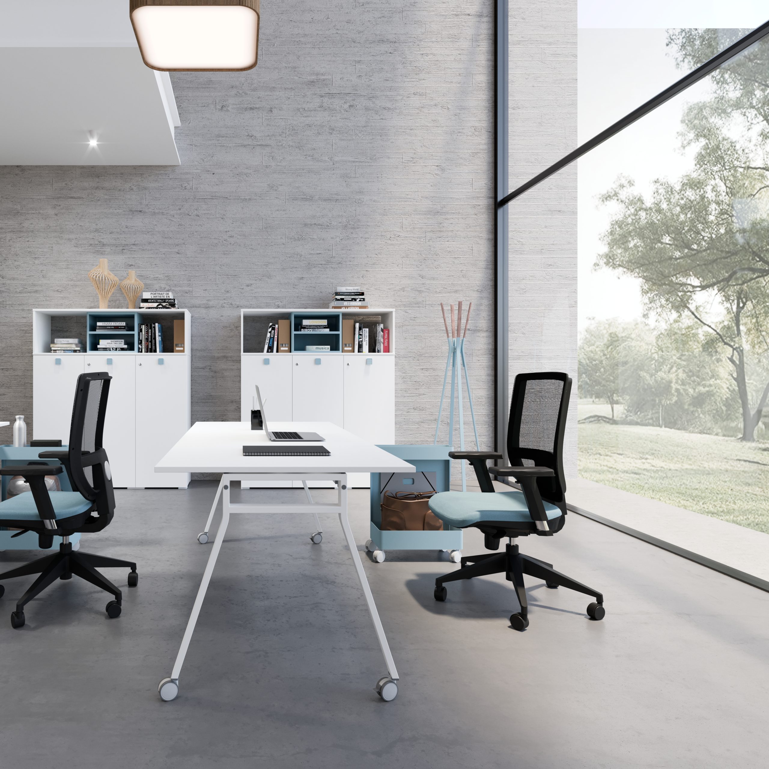 Upholstered chair covered with fabric or leather. It is provided with knee tilt mechanism, upholstered…