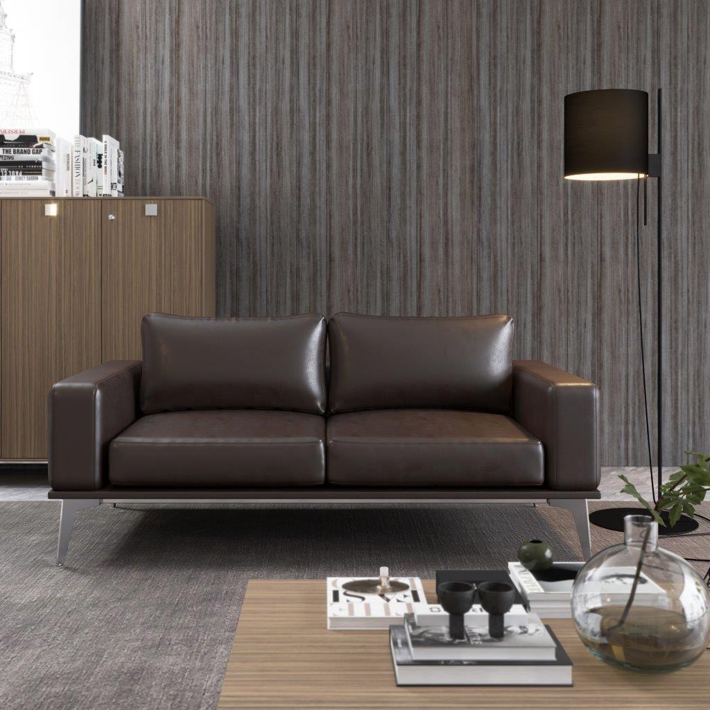 Rondo office chair is an office chair upholstered with natural leather, has three different heights, provided with five star base on castors or four-star base on rubber glides or waiting nickel chrome chair base.