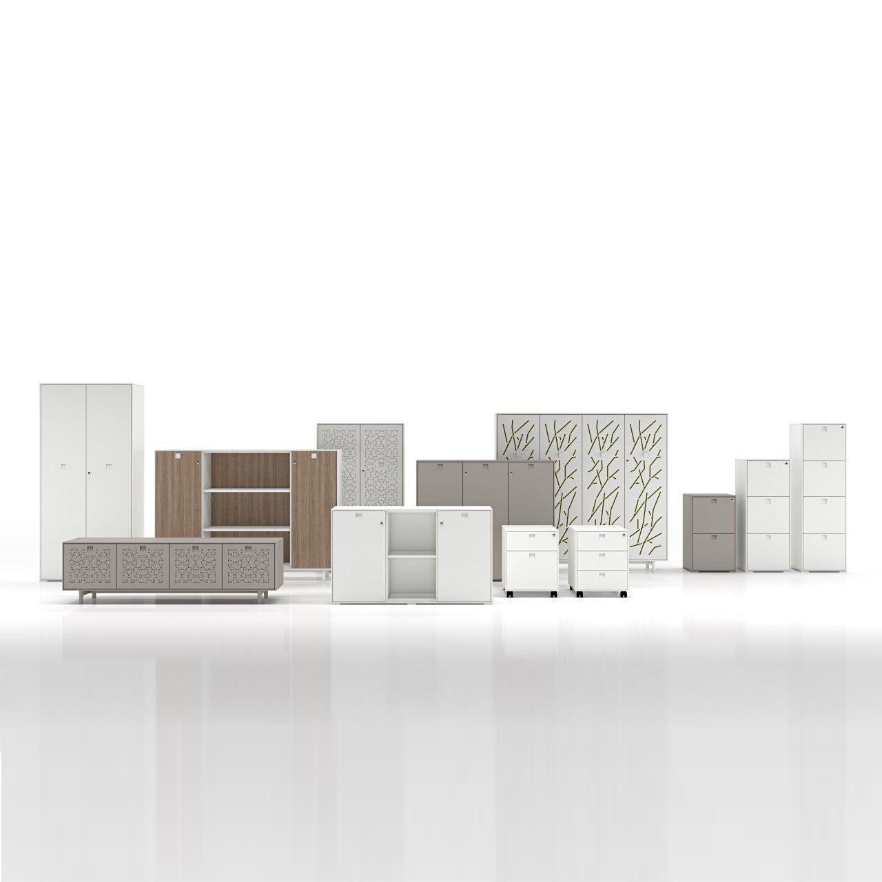 Description | Slim and clean cut shapes in an innovative design. Well balanced choice of materials, finishes and accessories. Various space-utilizing solutions. A storage system designed for all needs in the modern workplace. |