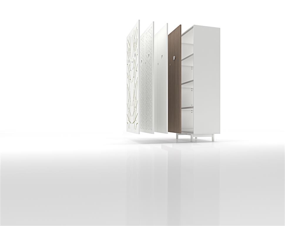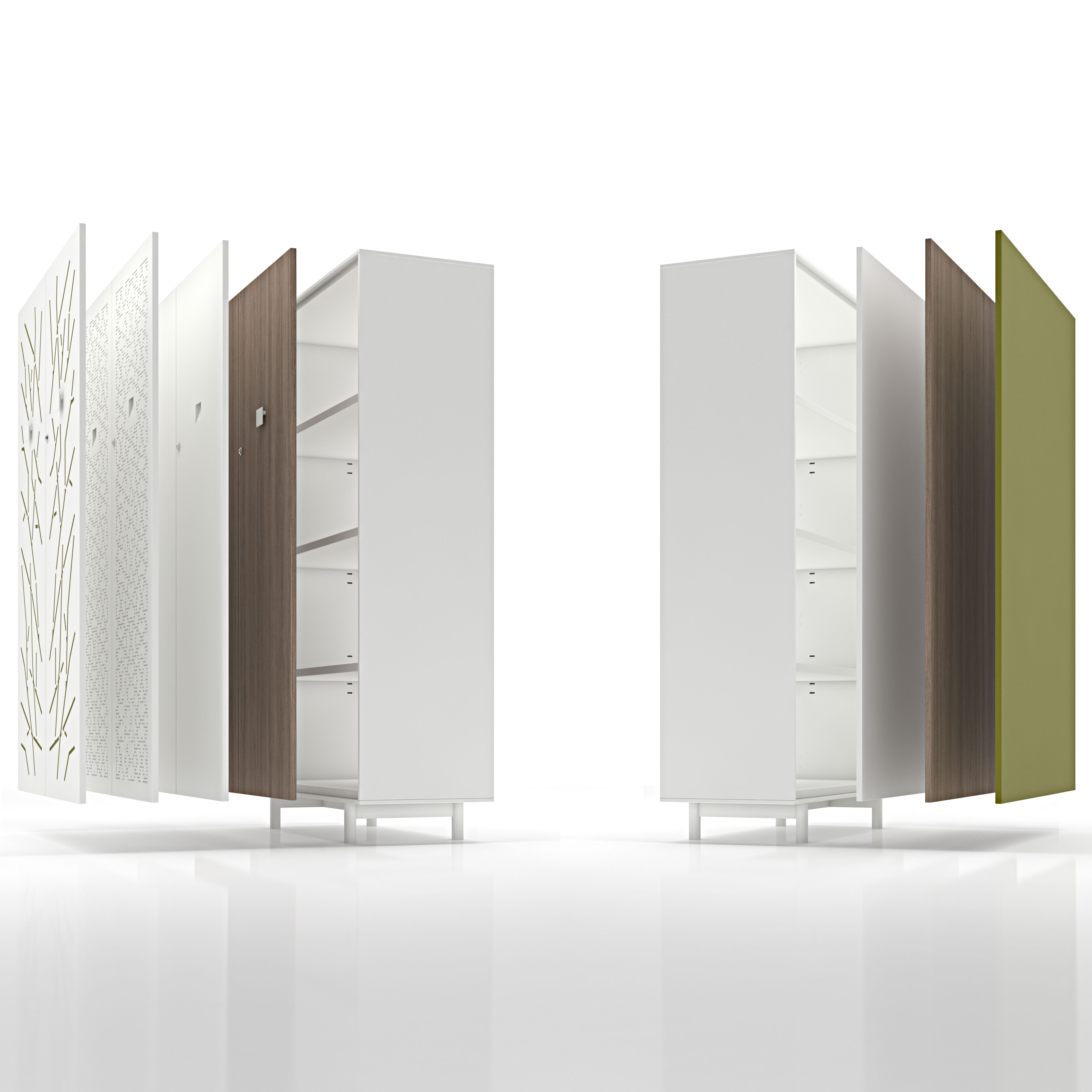 Specs | Metal cabinet available in different heights as an open storage unit or closed storage unit with metal, historic, bamboo or wood doors. It is also provided with metal back, wood back or fabric back. |