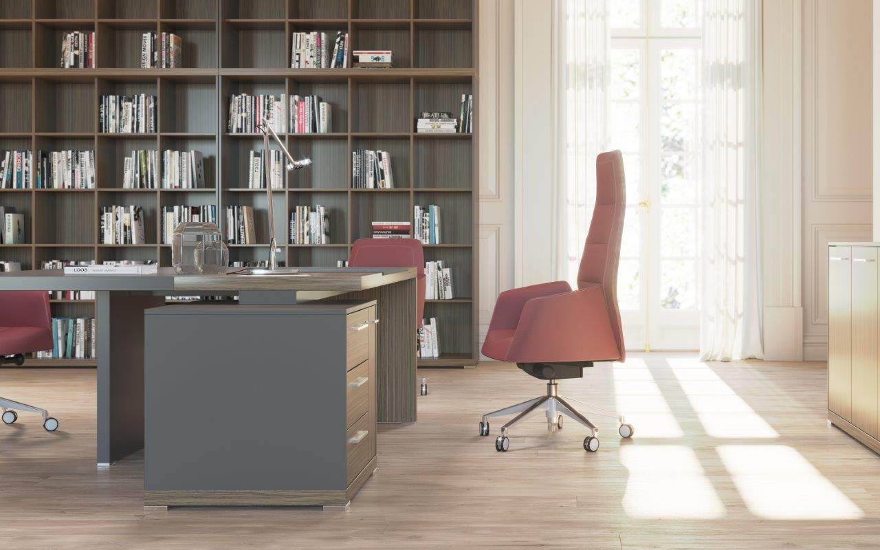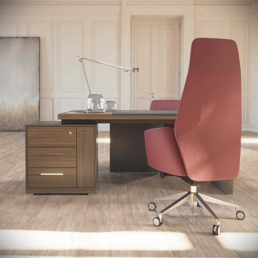 Meeting desk with a side unit for holding meetings and accomplishing tasks between managers and the work team.