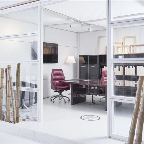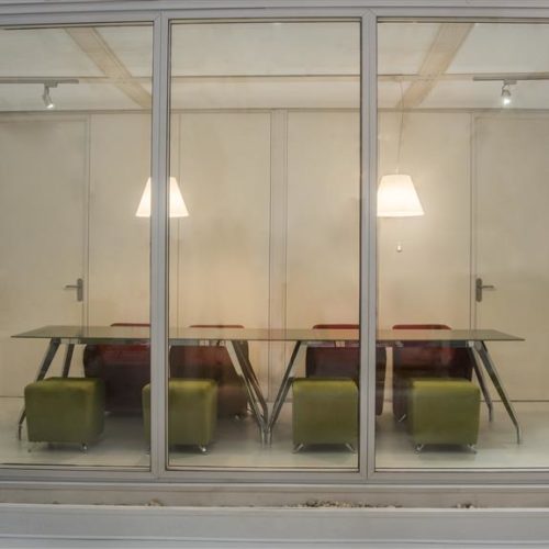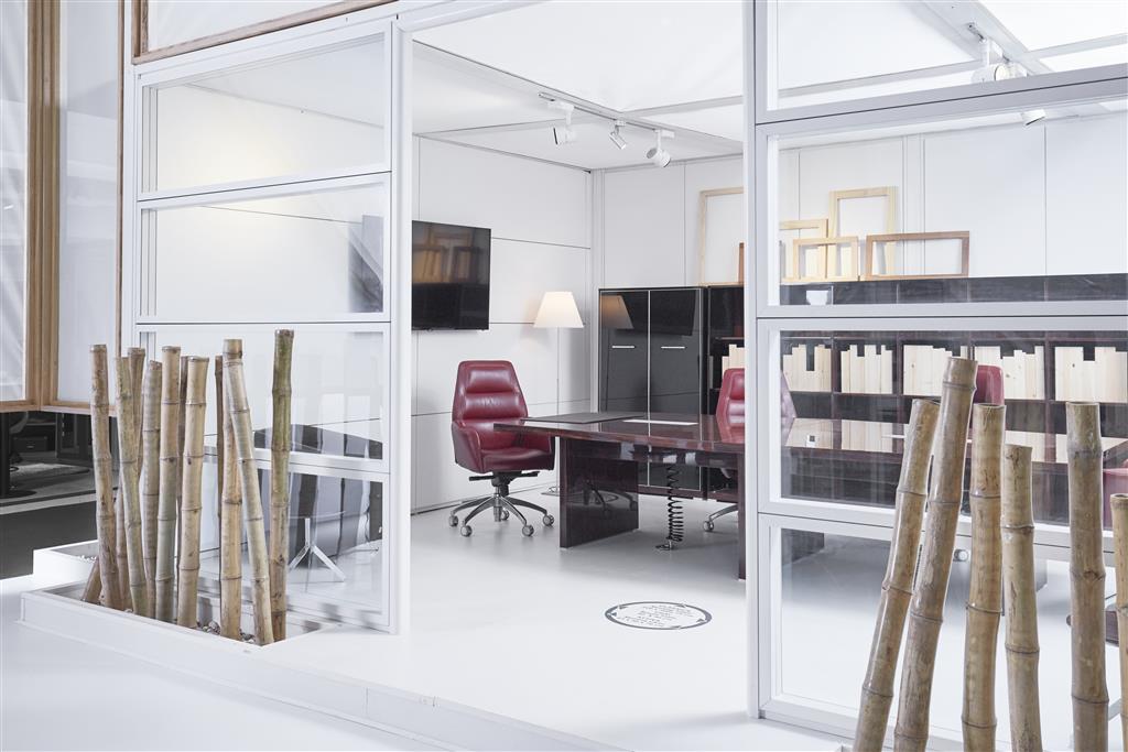 Mullions and connectors: 1 mm metal sheets, painted with white, grey and dark grey powder coating.