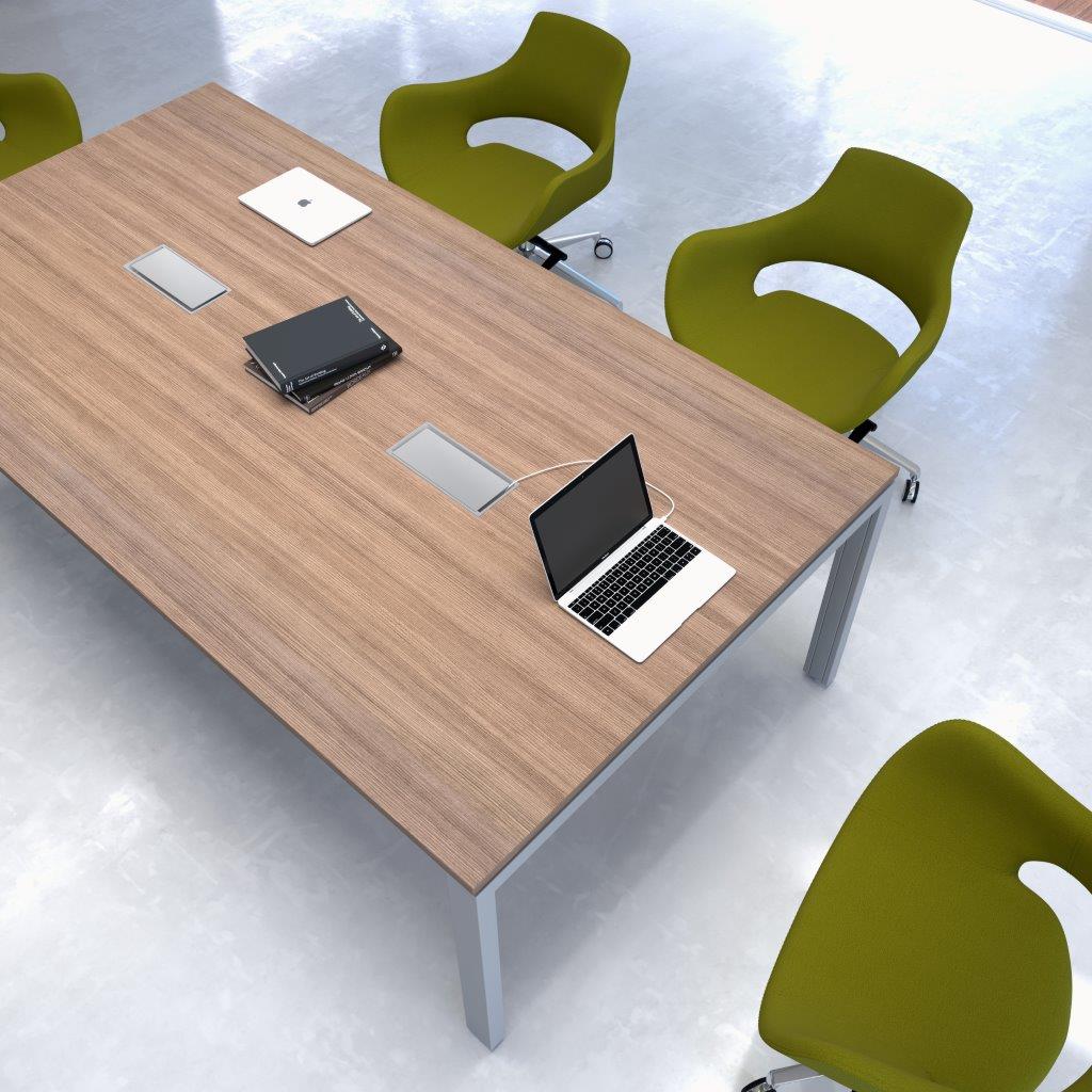 Description | Meeting table in different dimensions with top electrical outlets with cable box underneath the table top. |