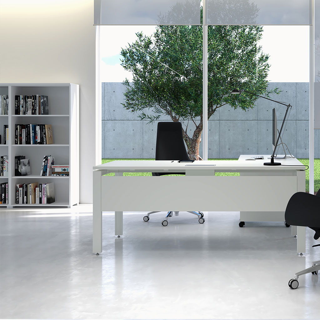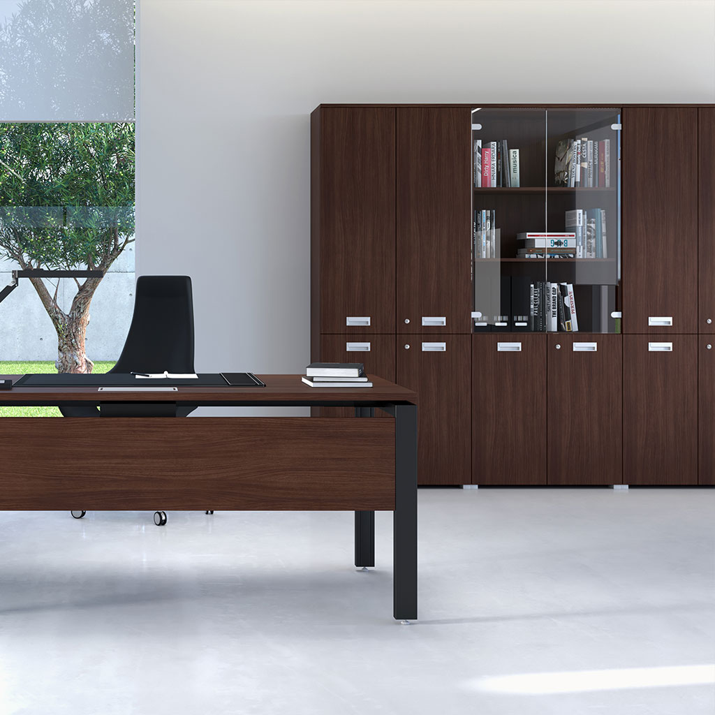 A contemporary collection of executive desks, meeting tables and cabinets. An exquisitely designed modern line of office units, matching the needs of luxury workplaces by bringing together minimalist executive elegance with value and functionality.
