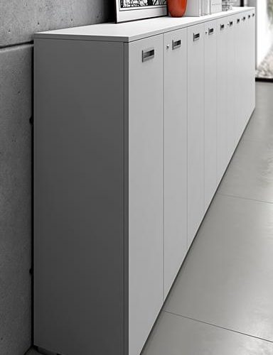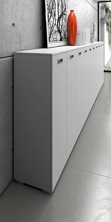 Slim and clean cut shapes in an innovative design. Well balanced choice of materials, finishes and accessories. Various space-utilizing solutions. A storage system designed for all needs in the modern workplace.