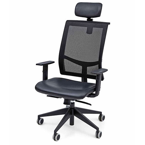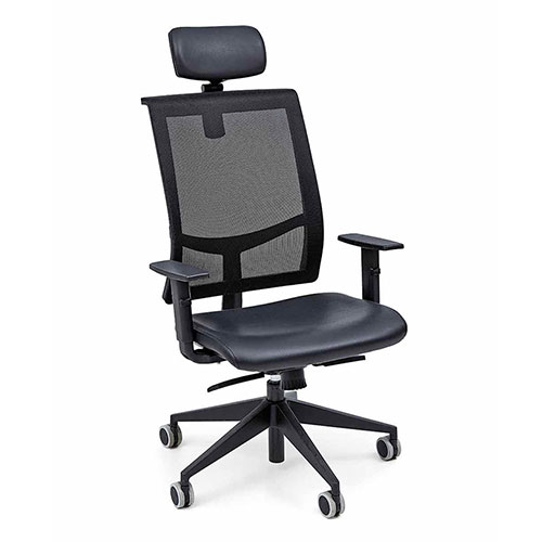 The chair is equipped with adjustable arm rest and has either chromed or nylon star base on 60 mm castors. The chair’s synchro mechanism can be locked in 4 positions. It can also be provided with a head rest.