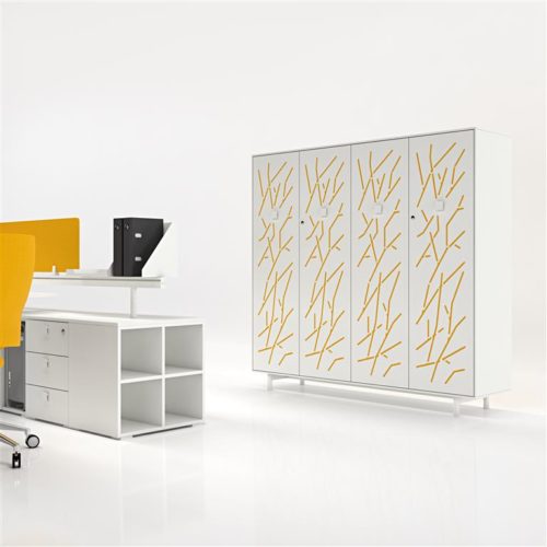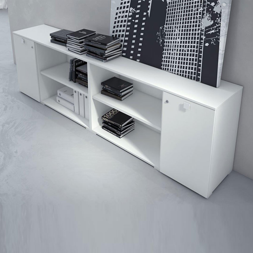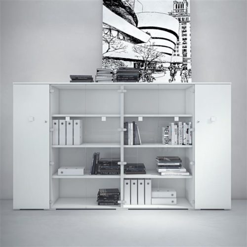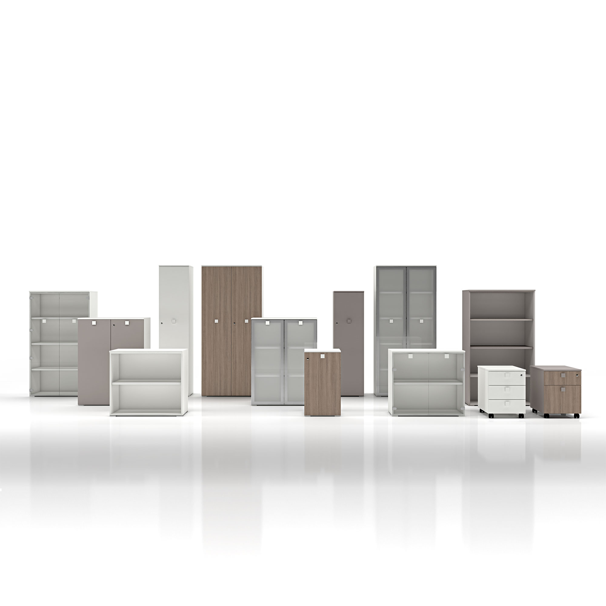 Specs | Modula Cabinet is manufactured using wood panels with wood doors, transparent glass doors, satin glass doors with metal frame, or available as an open storage unit. High quality western european accessories are used. |