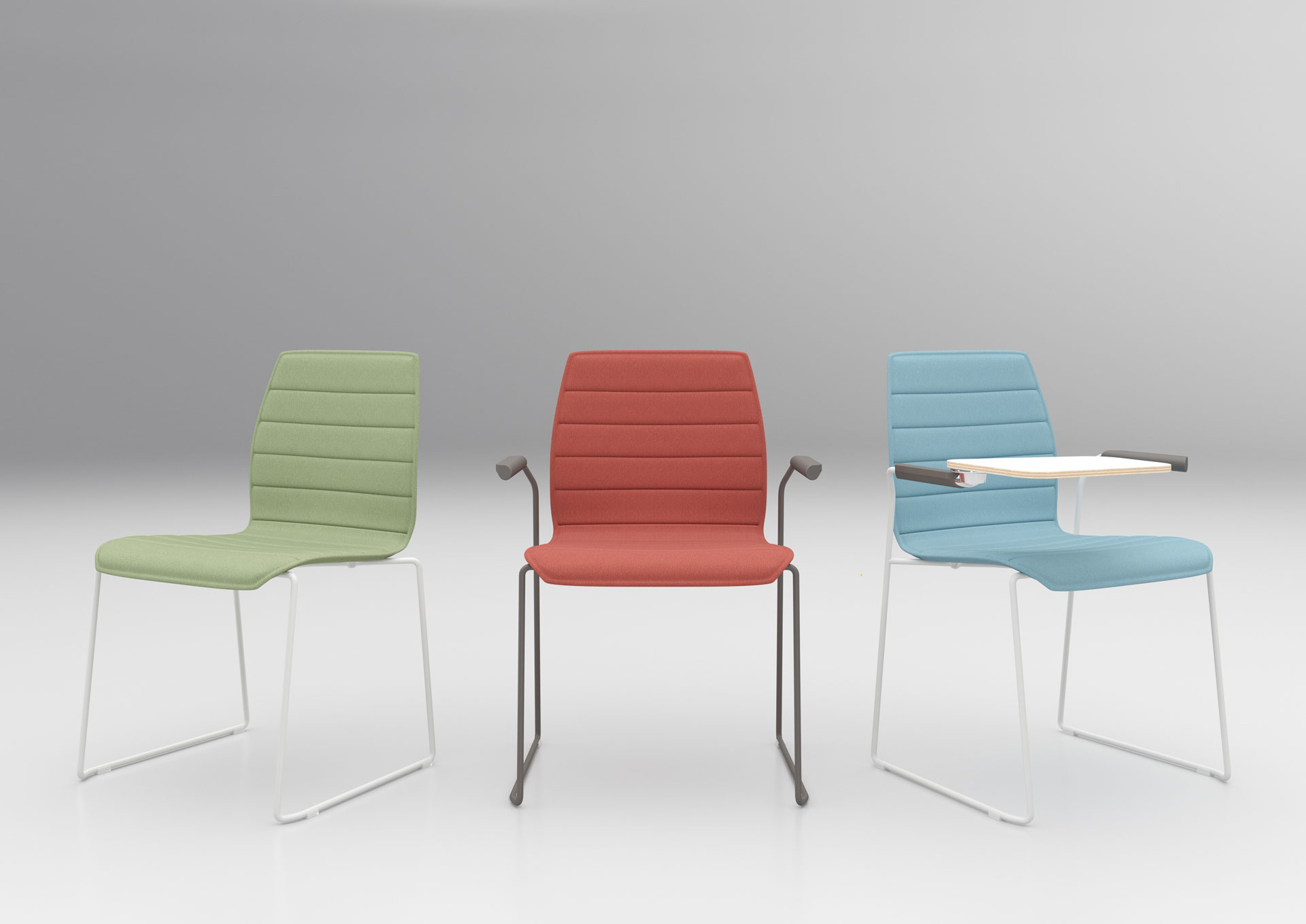Polyurethane injected foam chair upholstered in Leather. Back available in three different heights: High, Medium and Low.
