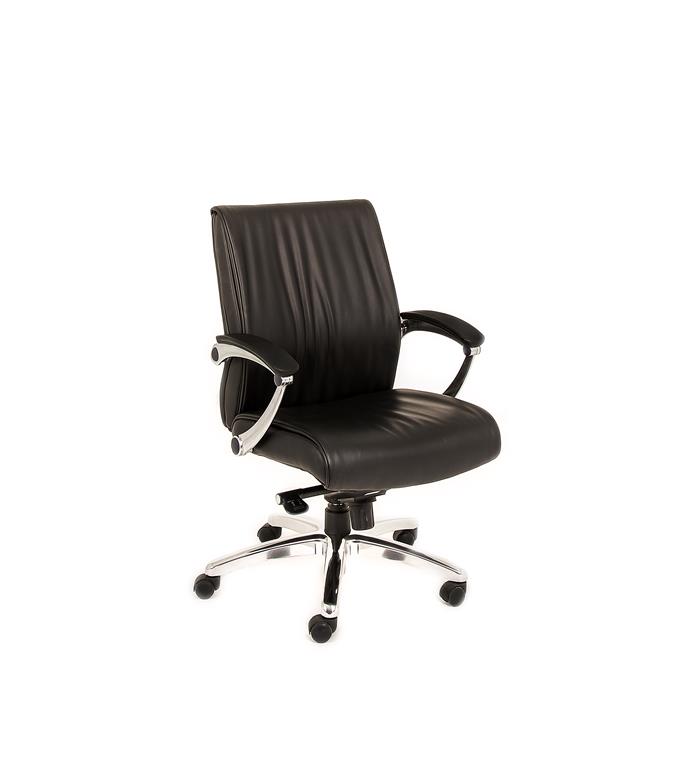 Rondo office chair is an office chair upholstered with natural leather, has three different heights, provided with five star base on castors or four-star base on rubber glides or waiting nickel chrome chair base.
