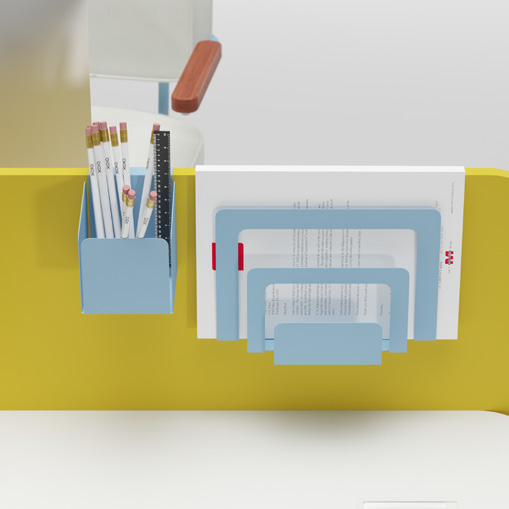 Screens: 18 mm particle board panel with matt White or stone grey wood melamine.